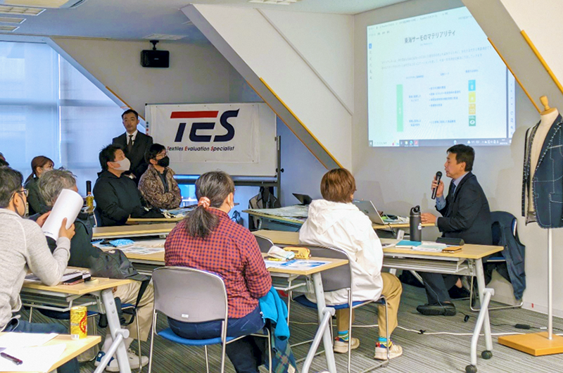 『TES会』では、資格取得後も法令法規改正や繊維製品に関する新しい知識の習得をすることができ、また、繊維製品に関わる様々な立場の方と交流をすることが可能です。